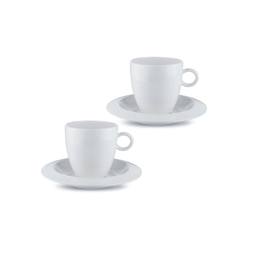 A design classic to complement any tea or coffee break. The set consists of two bone china coffee cups and saucers.