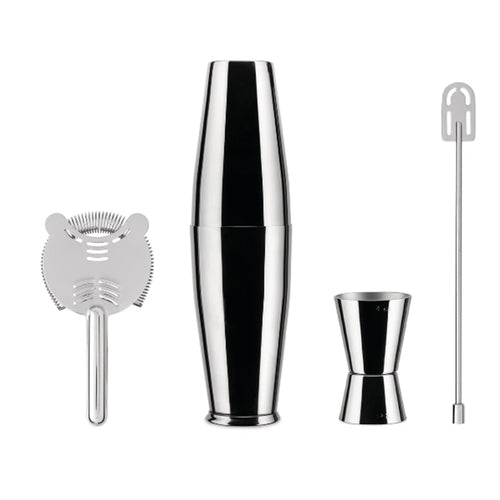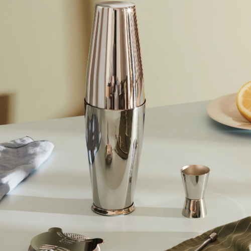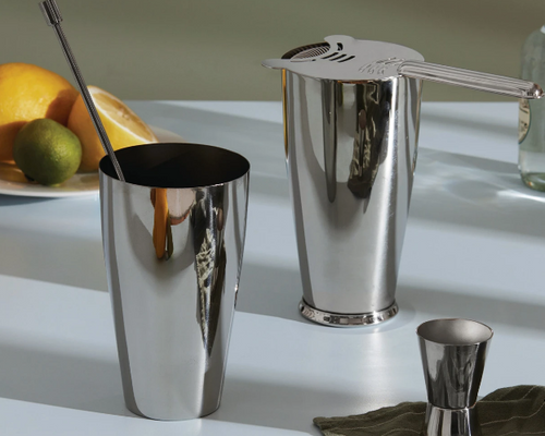 Made in stainless steel, Lunar Eclipse is the mixing kit inspired to the lunar universe. Objects with refined shiny finishes that spread a bright silvery glare. It includes an American shaker, a cocktail measure, bar strainer and stirrer.