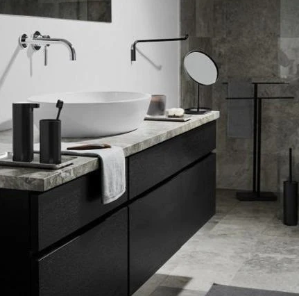 The Blomus Toilet Roll Holder - MODO brings elegant luxury to your bathroom or spa. The blomus MODO line is made of titanium-coated steel for a sexy, functional design piece. Turn a bathroom necessity into a beautiful design piece. The black titanium coating not only provides a pleasant feel, but is also durable, corrosion resistant and scratch resistant. The blomus MODO offers a variety of matching bath accessories in the same beautiful ti-coated black. Designed by Floz Design in Germany.