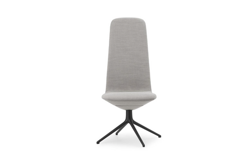 Off Chair consists of a seat made from rigid PU foam with full upholstery. Inside the upholstery and PU foam, the chair has a steel reinforcement structure. The base comes with either four static legs or five wheels with swivel and a tilt inclination of 10°, and is made of polished or black powder-coated aluminum. An optional cushion made of veneer and PU foam is available. Choose between leather upholstery or a wide range of different textile upholstery options.