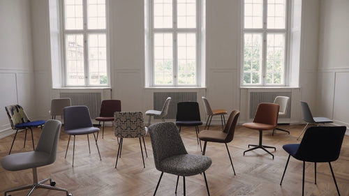 Shell made from 100% recycled polyprolene with 15% fiber glass. The 5-star swivel base with gaslift & castors is made from extruded aluminium, which is polished or powder coated. Upholstered seats are made with a veneer plate with 30mm foam. Seat pad available upon request.