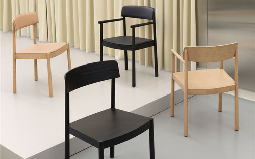 The Timb chair has a simple wooden structure with a richness of detail in the contrast between its curves and sharp lines. Its artisan traditions are also visible in its elegant dowel joints, which make it possible to manufacture the chair without the need for screws, allowing the wood itself to act as focal point. The chair comprises a frame of solid ash and a wide, comfortable seat, armrests and backrest made from ash veneer.