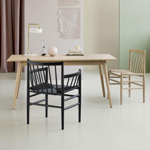 FDB Møbler’s J80 chair is an attractive wooden chair designed by Jørgen Bækmark in the 1950s. Featuring an angular frame with a spindle back and paper yarn seat, J80 chair is one of the icons of the mid-20th century Danish design.