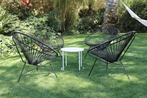 Made in Canada and inspired by the Mayan techniques of hammock weaving, the Acapulco chair combines traditional techniques with modern materials. Thanks to the flexible yet durable vinyl weaving which cradles the body, these chairs are incredibly comfortable. The avocado shaped form makes this chair perfect for lounging. They are perfect for indoor and outdoor use, and are great in all seasons. Available with black or white bases, and in regular or rocking versions. Available to special order in a wide range of colors. Please contact us for more information.