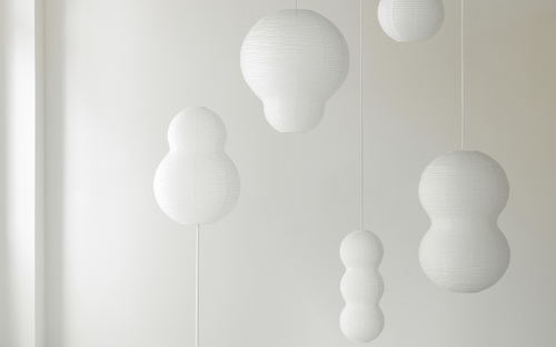 The Puff Lamp Collection honors one of the oldest traditions within lamp making in Asia. Rice paper lamp shades have been used for centuries and have originally adorned the halls of temples. It was also a trip to Japan that sparked the inspiration for the Puff Lamp Collection, where designer Saskia Huebner saw endless variations of the rice paper lamp. This became a motivation to find the right balance between sculptural playfulness and functional minimalism and resulted in a collection that invites you to arrange different voluminous shapes in a playful matter. Puff is thus suitable for the large hotel lobby, restaurant, or a small private room.