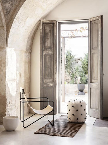 Part of Ferm's Way series of soft furnishings, this small but perfectly formed mat is made sustainably from recycled plastic bottles. The hardwearing, flatweave design is detailed with asymmetrical fringed trim for a handmade feel and the muted colour palette works with any décor. Pair it with the corresponding cushion for a matching set.