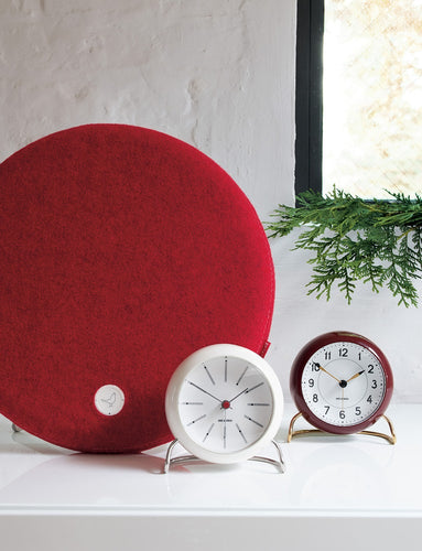 Arne Jacobsen’s black Station table clock is ideal as an alarm clock with useful detailing in a calm bedroom, as an element in the bathroom or as a stylish detail in a bookcase in the living room. With its classic styling, the clock makes an ideal gift for all design aficionados. Arne Jacobsen created the Station table clock in 1939 in connection with a project for the electrical goods manufacturer LK. Since then, the table clock – with reference to the original drawings – has been updated to bring it in line with today’s standards for alarm clocks. Accordingly, the clock has a light and a snooze function, both controlled touch-free thanks to an invisible sensor at the top of the clock.