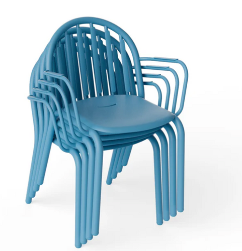 Introducing Fred's Chair and Fred's Armchair, a modern twist on the classic bistro chair, designed for lasting comfort and style. Made from weather-resistant aluminum, both chairs feature a curved seat that mimics the comfort of a cushion, with a unique smile-shaped opening for quick rainwater drainage. The armchair version includes armrests for added relaxation, and both models are conveniently stackable up to four high, making them ideal for any outdoor setting. Built to last, Fred's Chair and Armchair offer strength, elegance, and seating enjoyment for years to come.