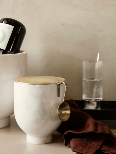 Serve your party guests in style with the Fein Ice Spoon. The head of the spoon features a hole for excess water, so you’ll only ever be adding ice cubes to your drink. The ice spoon is the perfect companion to the Alza Ice Bucket, its matte brass finish matching the ice bucket’s lid, from which it also can hang. Not dishwasher safe.