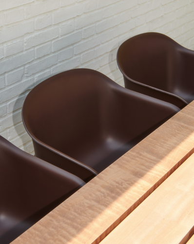 The Fiber Outdoor Armchair brings a new perspective on modern outdoor furniture, with an innovative shell material made of 100% recycled plastic. With each chair, a minimum of 3,2 kg of plastic waste is given new life. UV stabilizers are added to the shell’s composite, protecting the color of the chair from the wear and tear of outside life. The Fiber Outdoor Armchair’s friendly, embracing curves provide extensive comfort with a functional and durable design.