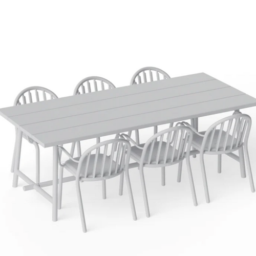 Introducing Fred’s Outdoor Table, the perfect blend of modern design and classic picnic table charm. This spacious outdoor table comfortably seats six to eight people, making it ideal for everything from casual family meals to lively dinner parties with friends. Crafted from ultra-durable aluminum, Fred’s Table is built to withstand the elements while offering a sleek, contemporary look that complements any outdoor space.