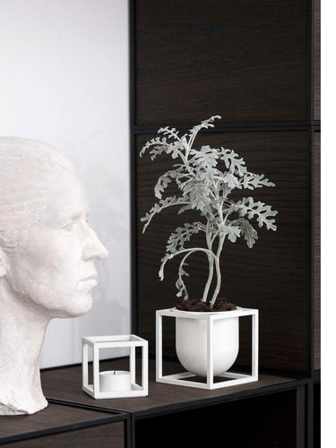 Herb pot, vase or a simple container. The possibilities are endless. Another addition to the Kubus collection, Kubus Flowerpots come in three different sizes: Flowerpot 10, designed by Søren Lassen and Sarah Abbondio; Flowerpot 14; and Flowerpot 23, designed by Søren Lassen. The container is deeper than the classic Kubus Bowl, making this a highly versatile storage item. As the name indicates, it was originally intended as a home for plants and flowers, but with its elegant geometric shape it will sit happily in any space as a standalone piece. The Kubus Flowerpot comes in two distinctive monochrome powder-coated colors enabling it to fit into the interior aesthetic of any style-conscious home. Place it on the table, window sill, on the garden table, on the patio, or hang it on the wall with the new universal fittings that give the Kubus Flowerpot a light, airy contemporary look. Like the other containers in the Kubus collection, this also comes with an insert that’s recommended for planting.