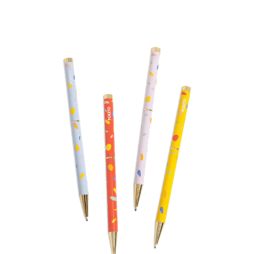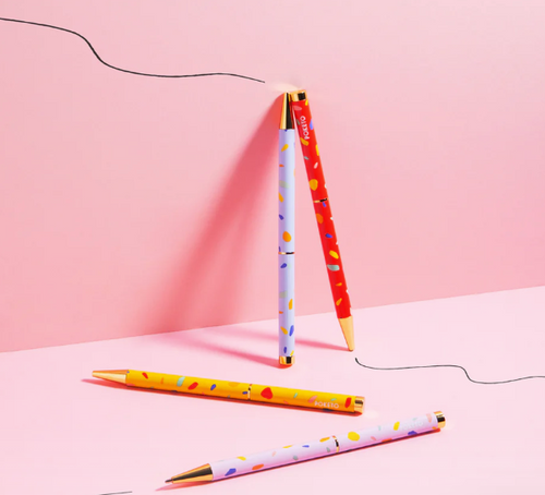 Poketo puts a twist on the popular ballpoint pen with this colorfully patterned line. Each color pops with gold-toned accents and a speckled design that's pure Poketo.