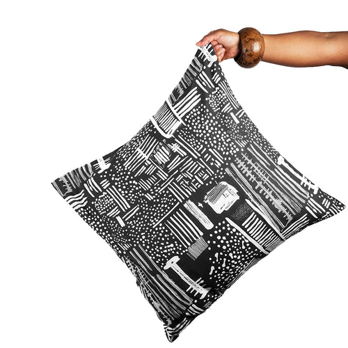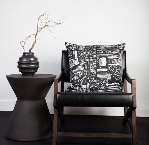 This pattern was originally a painting titled Grid and it was inspired by the ancient textile technique called Bogolan fini by done by the Bambara people. The Bambara people primarily in live in Mali but they are also in Guinea, Burkina Faso and Senegal. The artwork was then scanned and slightly edited achieve the best reproduction quality, then converted into a repeating pattern.