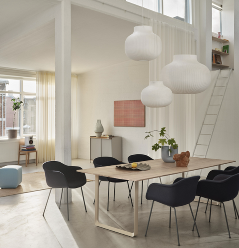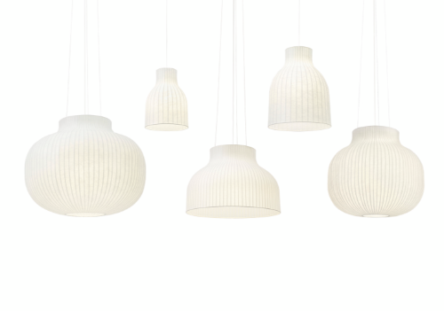 The Strand Pendant Lamp is designed with soft, playful forms for a modern expression. The design provides both diffused lighting and direct lighting, the latter through its top and bottom opening. The design is made in a sprayed cocoon material that consists of tiny strands for a complex, intriguing structure that, paired with its modern form, gives the Strand Pendant Lamp an almost cloud-like appearance. With its cocoon material filtering light through for a warm, comfortable glow, the Strand Pendant Lamp hovers lightly in space, bringing comfort, harmony and a refined sensitivity to any room.