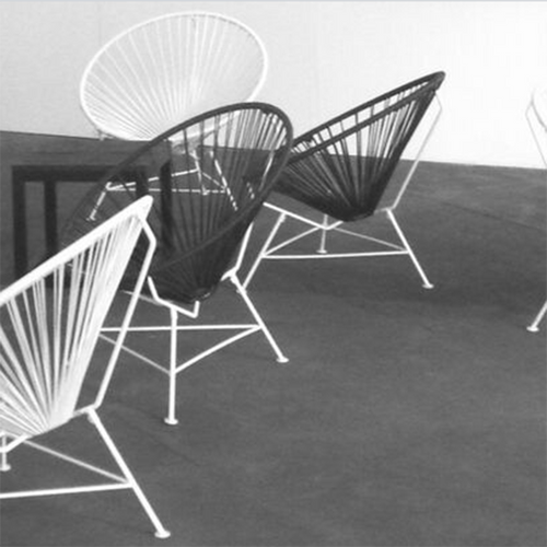 Made in Canada and inspired by the Mayan techniques of hammock weaving, the Innit chair combines traditional techniques with modern materials. Thanks to the flexible yet durable vinyl weaving which cradles the body, these chairs are incredibly comfortable. Featuring a perfectly circular body, the Condesa is more upright than the Acapulco chair. Perfect for indoor and outdoor use, and are great in all seasons. Bases are available in black or white, and in regular or rocking versions. Available to special order in a wide range of colors. Please contact us for more information.
