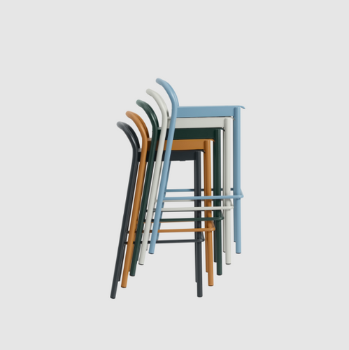 The Linear Steel Bar & Counter Chair offers new function to the outdoor environment, equally elegant and practical. The subtle, yet sophisticated design merges sturdy materiality and stackability with clearcut, simple lines and refined detailing, making both its durability and aesthetics decidedly long-lasting. Manufactured in weather and UV-resistant matte powder coated galvanized steel with a small spacing in the seat giving an easy outflow of water.