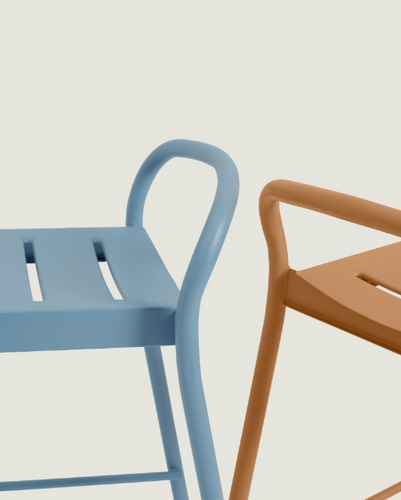 The Linear Steel Bar & Counter Chair offers new function to the outdoor environment, equally elegant and practical. The subtle, yet sophisticated design merges sturdy materiality and stackability with clearcut, simple lines and refined detailing, making both its durability and aesthetics decidedly long-lasting. Manufactured in weather and UV-resistant matte powder coated galvanized steel with a small spacing in the seat giving an easy outflow of water.