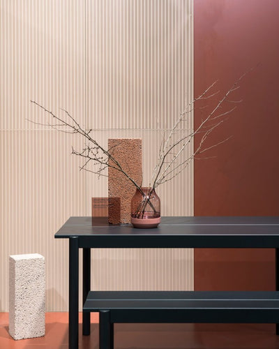 The Linear Steel Table brings new perspectives to modern outdoor furniture through its straight lines alongside the folded edges, halfcircular intersecting legs and small spacing for easy removal of water. Kept visually clean for long-lasting aesthetics, the Linear Steel Table finds it distinct character through subtle detailing and a simple expression, allowing for it to complement any outdoor setting. Pair the table with the Linear Steel Bench, designed in proportions that allow for it to slide easily under the table.