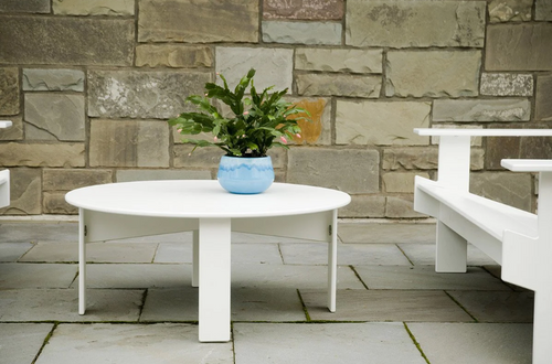This round outdoor cocktail table is part of Loll Designs’ modern satelite collection. Made from heavy, 1-inch-thick recycled plastic, it is available in several environmentally conscious colors. The Satellite Outdoor Cocktail Table is also available in rectangle or oval versions.