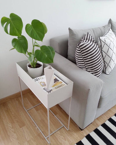The Ferm Living plant boxes can be used for decoration all over the house, as temporary storage in the hallway or as a divider to create cosy corners in larger rooms. They’re suitable for flowers, plants, books, toys and magazine – or maybe a little of each. Style them with delicate flowers in fine vases or try green plants in chunky clay pots and watch how the contrasts between the design and the added elements play. There’s an elegant and timeless aesthetic to the plant boxes from ferm LIVING. And the design has a striking and interesting contrast between the rectangular box on top and the thin metal legs.