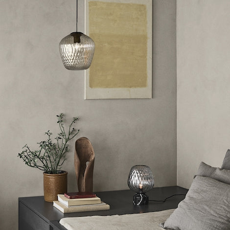 &Tradition’s Blown pendant light in silver casts a beautiful pattern of light in its surrounding space. Blown is Samuel Wilkinson’s study of light’s reflection and refraction in glass, taking inspiration from antique ceramics, old lamps, lighthouses and the arrangement of seeds in berries. The blown glass shade features a matte powder-coated metal suspension and a fabric cord.