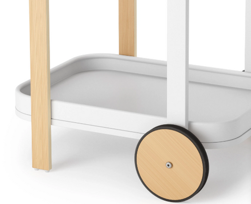 A modern, two-toned wooden bar cart, Bellwood Bar and Serving Cart makes the perfect addition to any corner of your home. Create your own at-home bar setup or use Bellwood to make an indoor garden cart or side table. Bellwood's rubber-rimmed wheels, make it easy to move around or remove a tray to help you serve on the go or clean. With two tiers, there is plenty of space to add your bar tools and accessories, stemware, decor and more. Easy assembly with instructions and hardware.