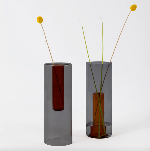 block Design Reversible Glass Vase - Large - Smoke/Amber $85.00