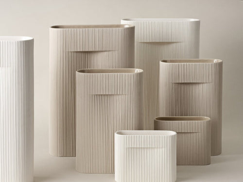 The Ridge Vase presents a new way to display flowers through its sculptural expression along with an artful character when not in use. The design features added functionality through its refined dent, allowing flowers to stand upright while also working as a subtle handle when moving the vase from one room to another.