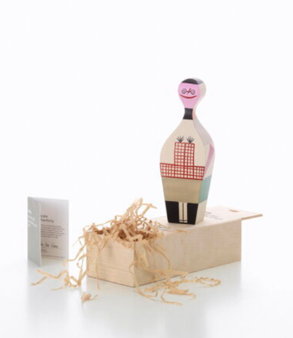 Vitra’s Wooden Doll No. 8, designed by Alexander Girard, is a charming wooden figurine made from hand-painted fir. This unique wooden doll comes packed in an elegant wooden gift box.
