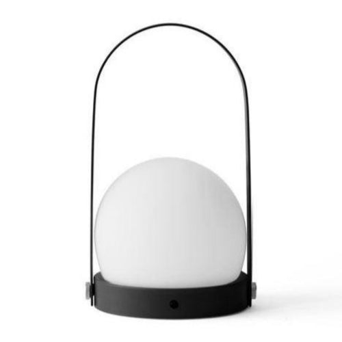 Designed as a portable, lightweight lamp, the Carrie LED Lamp is unique for its multiple uses and mutability. With a sleek, functional handle and a warm orb of light nestled gently in a basket-like base, the lamp is useful almost anywhere; even on the go, as it is cordless and comes with a USB charger. Move it from your office to your bedside table, to your evening picnic in the park and in your bicycle basket as you ride home. The cosy light created by this special piece of lighting brings comfort and sophistication wherever you are. The portable LED lamp comes in black, white, burned red, olive green and brushed brass. It offers a low, warm light in three dimmable settings perfect for creating a cosy ambience. Fully charged, it will stay on for ten hours. The lamp can also be hung on the wall by the handle, and the handle can also be easily detached.