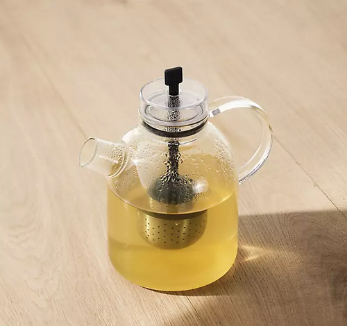 The Audo Kettle Teapot was designed by Norm Architects to blend Asian Zen philosophy with modern Scandinavian design. The Clear glass vessel makes brewing tea a visual experience, stimulating the other senses in the process. The included tea egg is both a functional strainer and unique design detail, easily raised and lowered with the attached silicone string.