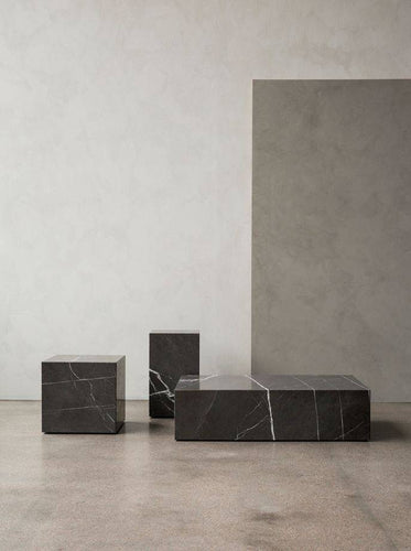 As versatile as it is timeless, the marble Plinth serves the dual purpose of being a beautiful, sculptural piece on its own and highlighting whatever objects rest upon it. The honed marble carries an air of sophistication and elegance to elevate any space. Plinth is available three sizes. The low rectangular version is ideal as a monumental coffee table. The cube makes a perfect bedside table or side table. Use the third Plinth in the traditional manner – as a podium on which to display a bust, sculpture, art books, plants or a lamp.