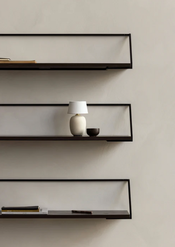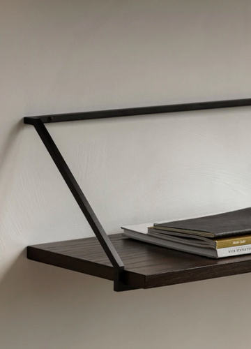 Guiding one’s eye like a handrail guide’s one’s step. The Rail Shelf from Audo is an efficient design, balancing one’s displaying needs with the contemporary home’s ultra-refined aesthetic. Creator Keiji Ashkizawa’s object and architectural design background rings clear in this piece. Ashkizawa uses steel brackets to both mount the piece and give one’s objects a framing rectangular silhouette. This bracket shoots out at a dynamic angle to hold a low-profile wood shelf. The shelf’s natural texture and shifting hues lay a rich background for one’s items.