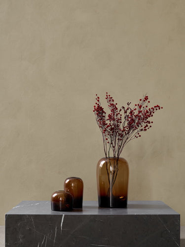 The idea behind Troll Vase started as a study of the properties of glass – examining how the intensity of colour changes depending on the thickness of the material. The result is a vase featuring a dynamic change of thickness throughout, from solid coloured base to thin transparent bubble-like top.