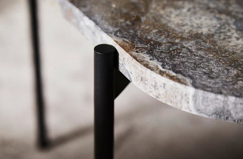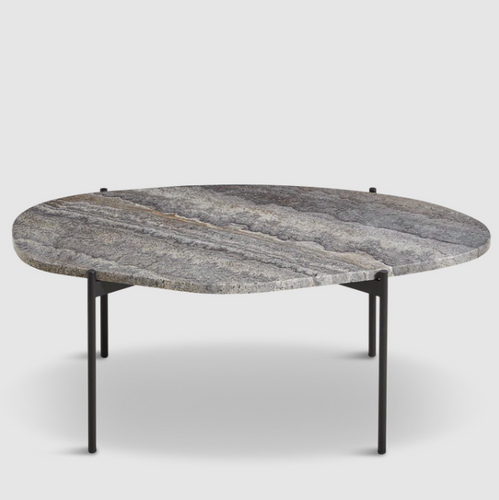 woud La Terra Occasional Table (Large), Grey Melange Travertine Top with Black Painted Metal Legs $2,575.00
