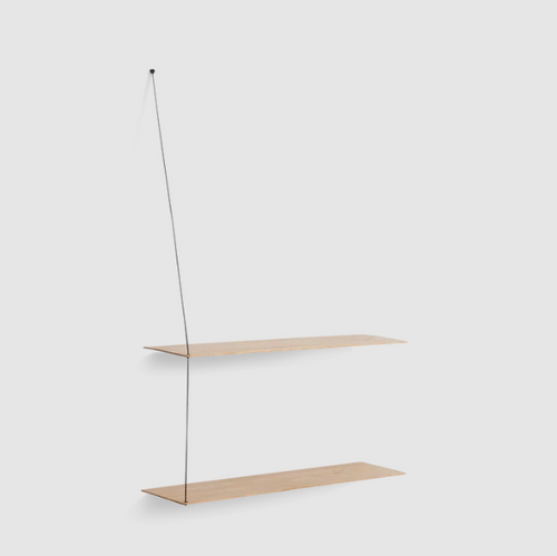 Stedge is all about lightness, purism and a clear structure. The subtle design is an optical illusion as the solid shelves seem to hang by a thread. With its light expression and fine edges, Stedge will be a perfect match for any room. Extend the shelving system with more shelves and choose either a long or short top wire to make it a perfect fit on your wall. Available in two widths.