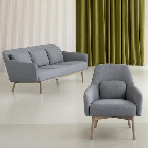 The Gesla sofa and armchair are to be admired from all angles, and can be placed in the center of a room. The Gesla collection is also designed for everyday use, perfect for a family, with a durable, easy to maintain fabric options.