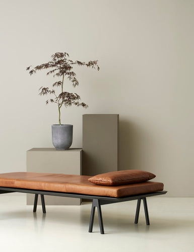 The daybed takes its name, Level, from a symmetry between the domestic and work environment; a generally sought-after condition. The supple leather and the sturdy wood components elevate the simple whole. Allow yourself to take a break while keeping both feet on the ground. Add a leather pillow to the mattress for extra comfort or decoration.