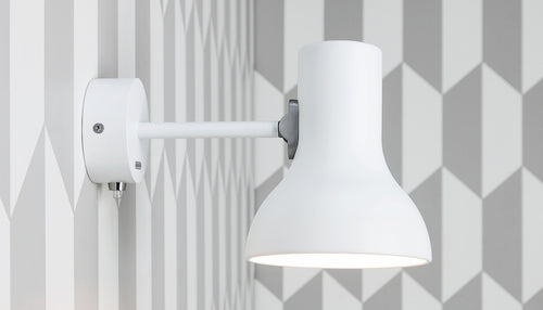 The Anglepoise Type 75 Mini Wall Light proves the versatility of sophisticated mechanics and industrial design, adapting this 1950s classic to a convenient wall position. The petite aluminum shade is both crisp and smooth—emblematic of mid-century modern aesthetics—sitting comfortably from the wall on an extended arm, able to provide ample down lighting or angled spots of light with the adjustable shade. Increasingly flexible, the Type 75 is cleverly outfitted with a chrome switch at the base for further functionality.