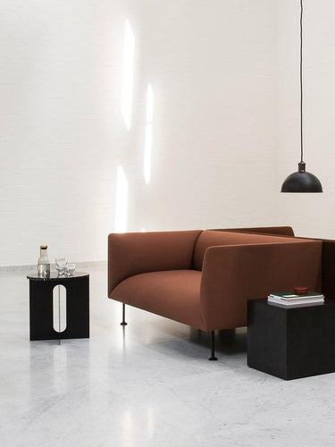 The perfectly proportioned table comprises a sturdy powder coated steel base on which a rounded marble tabletop is balanced. The table’s refined marble top, which barely hangs over the legs to create an overall sense of balance, and contrasting wide, flat legs – laser-cut for precision – make it an easy fit for a range of décor styles. Both base and top are available separately and in ivory or black powder coated steel and white or black marble respectively for total customization.