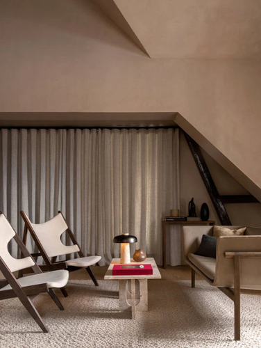 Imagined by Norwegian architect and designer Danielle Siggerud for Audo’s former showroom café, the Androgyne Collection profiles simple silhouettes and refined materials. A monumental design crafted from kunis breccia stone, marked by characteristic veins and mineral fragments in warm hues, the Androgyne Lounge Table continues the simple silhouette of the collection while introducing natural materials and a shape and function made for everyday settings. The versatile design makes it possible to use as both a lounge table or bench for piles of books or statement decorations.