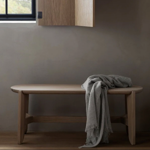 The ELI Oak Bench is solid and bold with rounded edges and shapes that give it a sensual and soft appearance. The ELI series, designed by Theresa Rand, is made in Europe from regional solid oak. The deep thickness of the material gives the furniture visual and constructive strength. ELI furniture can be used as seating furniture or as tables and can be easily transported within the home to suit multiple uses. Purposely designed and constructed to last a lifetime and become a family heirloom piece.