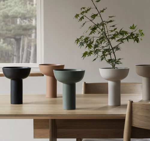 Blomus' Miyabi Ceramic Vase, inspired by the Japanese art of ikebana - the gentle and mindful arranging of flowers into sculptural bouquets. The Blomus vase is designed by Kazushige Miyake. MIYABI translates directly to elegance, grace or sophistication. What could be a more appropriate name for an ikebana vase? Ikebana considers not only the shapes, lengths and colors of the flowers and stems, but also the surface of the water, which is displayed in the wide top portion of the vase.
