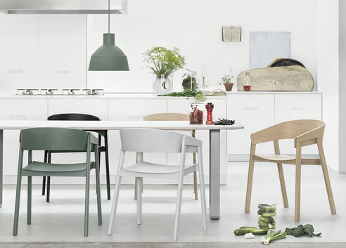 COVER chair, designed by Thomas Bentzen, is a modern reinterpretation of the classic wooden armchair. In a clever design choice, thin form pressed plywood covers are given the dual role of working as comfortable armrests, while at the same time ensuring that the chair holds together. COVER's contemporary design gives it a strong personality and with a frame produced from solid beech wood it is extremely robust and hardwearing. The chair is also very versatile, at home at the dining table, as a desk chair, in a restaurant, hotel room, or any other public setting.
