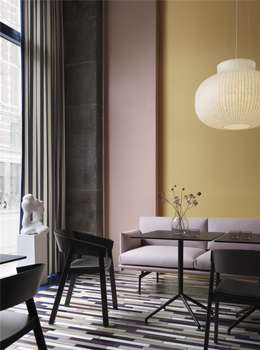 Materials: All wood: PU lacquered oak. Form-pressed wood veneer shell. Coloured version: seat and shell is made from ash, while frame and legs are made of solid beech wood. Textiles from Kvadrat.