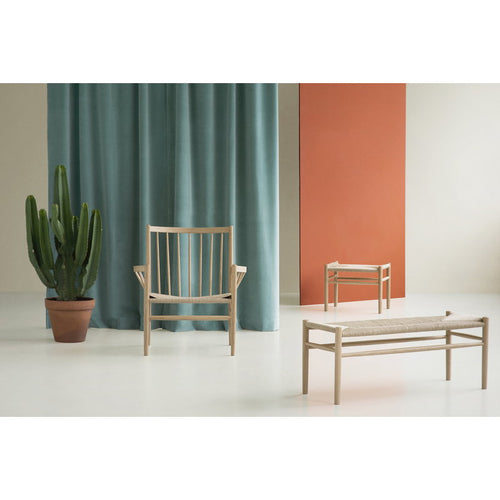 FDB Møbler’s J83B bench is an attractive wooden piece designed by Jørgen Bækmark in the 1950s. Featuring an angular oak frame with paper yarn seat, the organic look of J83B bench is versatlie – it can be used, for example, as a hallway bench or extra seat in the living room or kitchen.