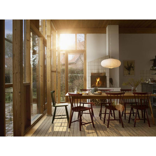 FDB Møbler’s J46 chair is a Danish design classic by Poul M. Volther from 1956. When first released, the J46 was a fresh contrast among the typical, heavier dining chairs of its age. Made of solid beech, the J46 chair combines a V-shaped spindled backrest with a wide, comfortable seat. The lightweight chair will suits various decor styles, and is a timeless addition to your home.