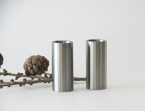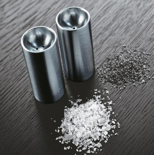 Serve with style. Arne Jacobsen salt&pepper set is an iconic addition to your table, for your food and as a decorative element. The cylindrical shape that is the basis of the cylinda-line range is visually calming and adds a touch of exclusivity to your table.