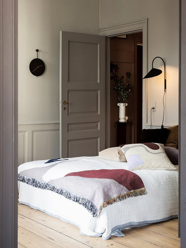 The Arum Wall Lamp is characterised by the organically shaped shade suspended from curved metal arch in a leaf-like manner. With the matte, off-white inside of the shade, the lamp provides a soft, evenly distributed light, and the lampshade can be adjusted to ensure optimal light conditions in all situations. The lamp is delivered with a wall bracket, so it is easy to mount on a wall.